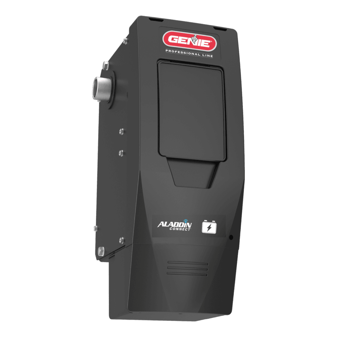 The Genie Wall Mount Pro Series garage door opener Model 6170H-B revolutionizes garage door operation with its innovative wall mount design, integrated Aladdin Connect technology, and battery backup. By attaching directly to the garage door’s spring tube, it eliminates the traditional rail and powerhead, freeing up ceiling space for storage or a clean, uncluttered look. The Aladdin Connect feature allows remote monitoring and control via smartphone, while the battery backup ensures operation during power outages. With a bright LED light fixture, door lock, and Safe-T-Pulse™ system for enhanced safety, the Model 6170H-B combines convenience, functionality, and reliability, backed by a Limited Lifetime Warranty for the motor.