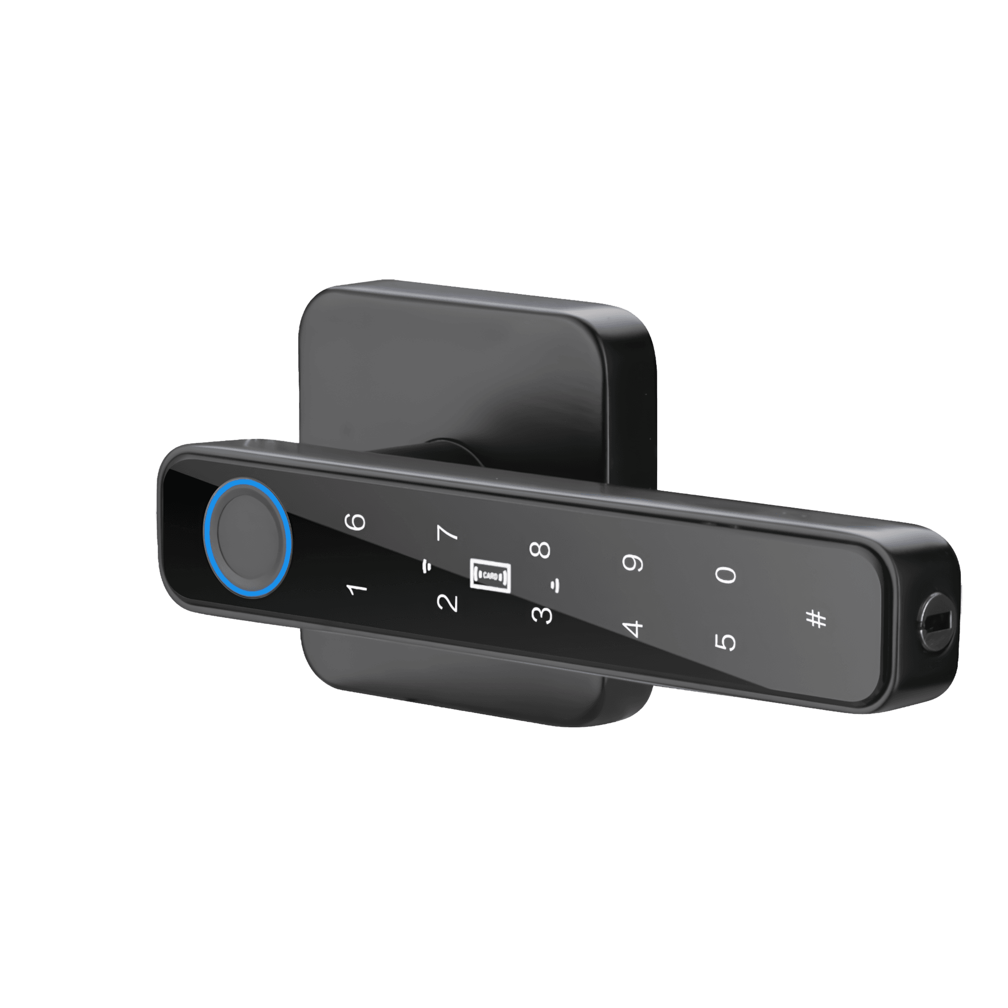 The TTLock Handle Card Version is a compact, battery-powered smart door lock in the form of a handle designed for easy installation on wooden or metal doors without wiring. It lets you unlock the door using RFID cards, a PIN code, fingerprint, the TTLock app (via Bluetooth or Wi-Fi with a gateway), or a traditional key, and can store up to about 100 users per method. The handle’s body covers old holes and works with various latches or cylinder locks, making it a flexible DIY upgrade for homes or rentals.