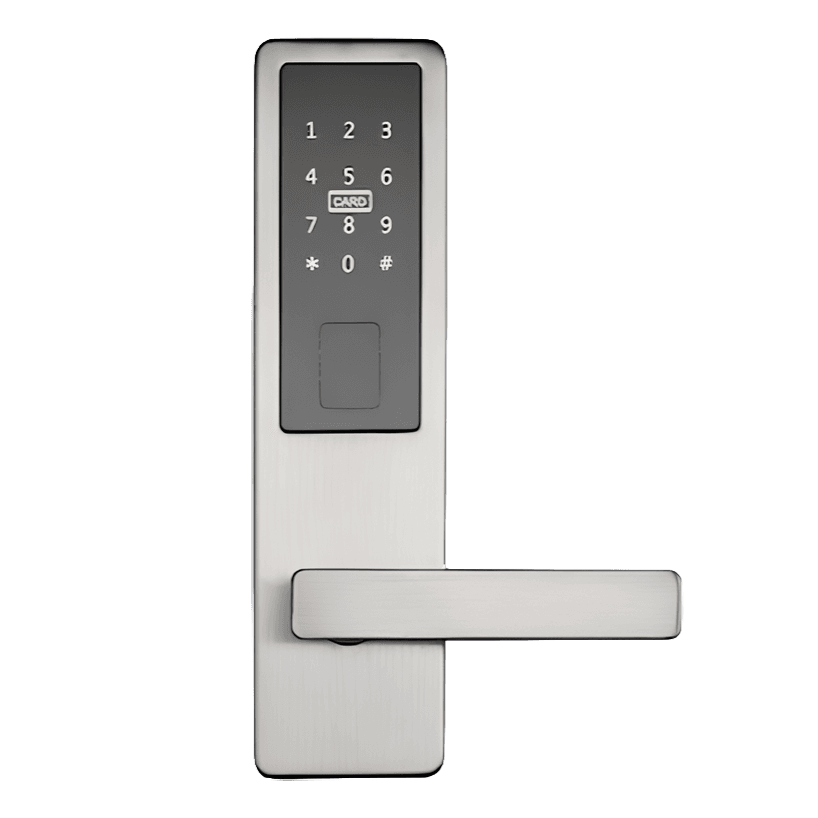 The TTLOCK HOTEL is a budget-friendly electronic hotel door lock with a classic ANSI mortise design made for interior wooden doors. It runs on 4 AA batteries (no wiring needed) and unlocks using PIN codes, RFID cards, Bluetooth/app control, and a mechanical key, making it suitable for hotels, hostels, rentals, or other access-controlled indoor doors where simple, reliable keyless access is desired.