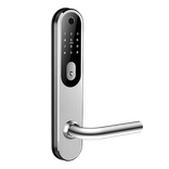 The TTLOCK NORDIC is a Scandinavian-style smart handle lock with a robust stainless-steel body and extra protection against dust and rain, suitable for both interior and exterior doors. It supports multiple access methods including fingerprint, PIN code, MF-card, app control (TTLock or TTHOTEL), Bluetooth, optional Wi-Fi with a gateway, and a mechanical key, and can be integrated with hotel management systems in TTHOTEL mode. The handle works with the latch while the cylinder mechanism controls the deadbolt, and it’s designed for reliable, heavy-duty use on doors.