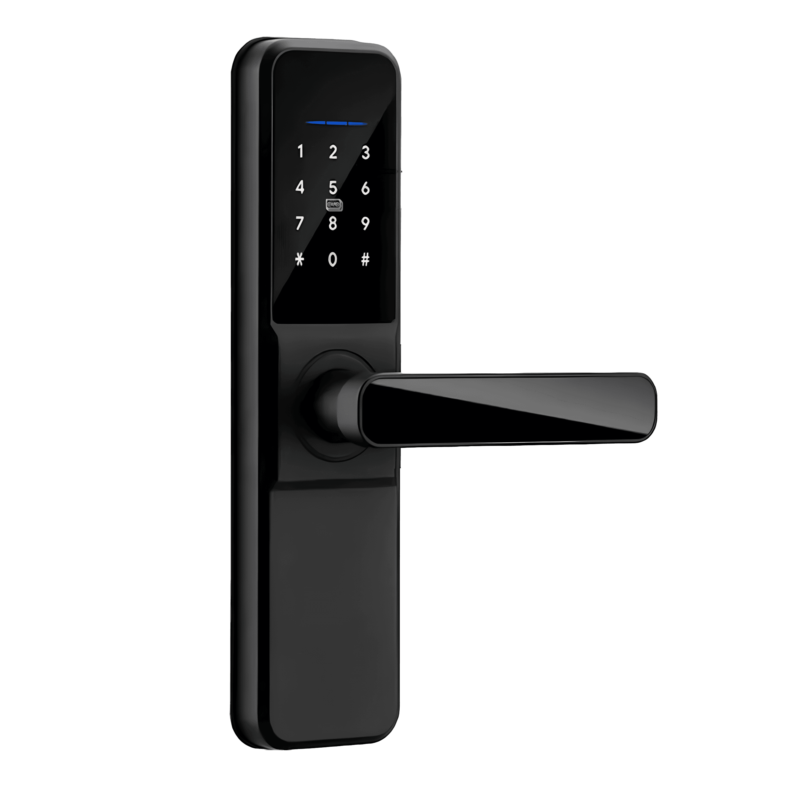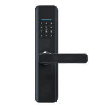The TTLock Renty Wi-Fi Black is a battery-powered smart door handle lock with built-in Wi-Fi that fits most wooden or metal doors. It lets you unlock and manage access using PIN codes, RFID cards, Bluetooth or Wi-Fi through the TTLock app, or a physical key, and includes convenient features like passage mode and do-not-disturb mode for flexible use in homes, rentals, or offices.